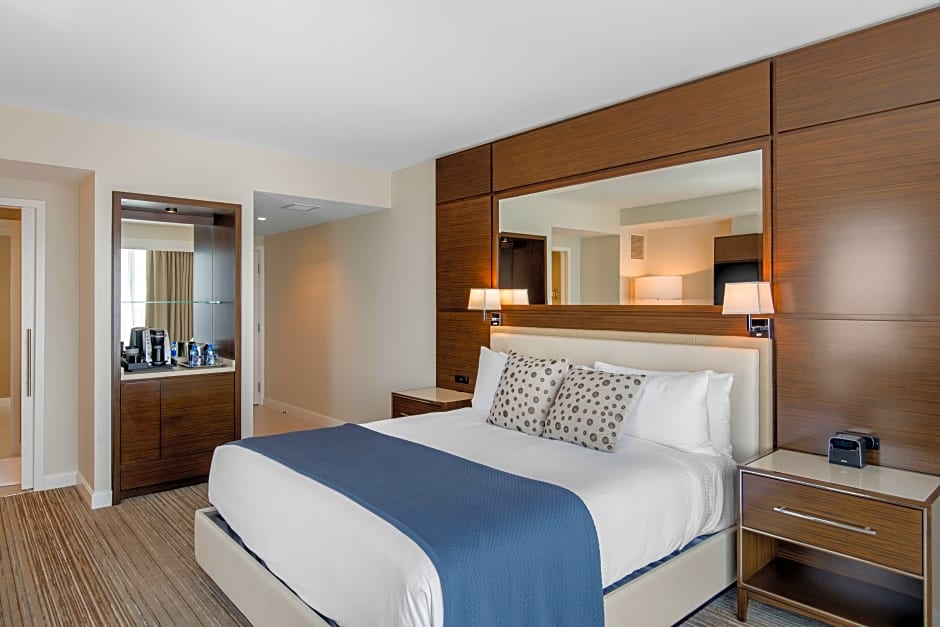 敷地内のダイニングは、どの食事も特別なひとときにしてくれます。Neighborhood Services は家族連れに好適な現代的な空間でアメリカ料理を提供し、The Edge Waterside Lounge(季節営業)は水辺でのカジュアルな軽食を楽しめます。ロビー・バーは食前酒にふさわしい洗練されたモダンな雰囲気を演出します。テラスやサンデッキに出れば、スタイリッシュな眺めと周囲に調和するささやかな地元の魅力が味わえます。